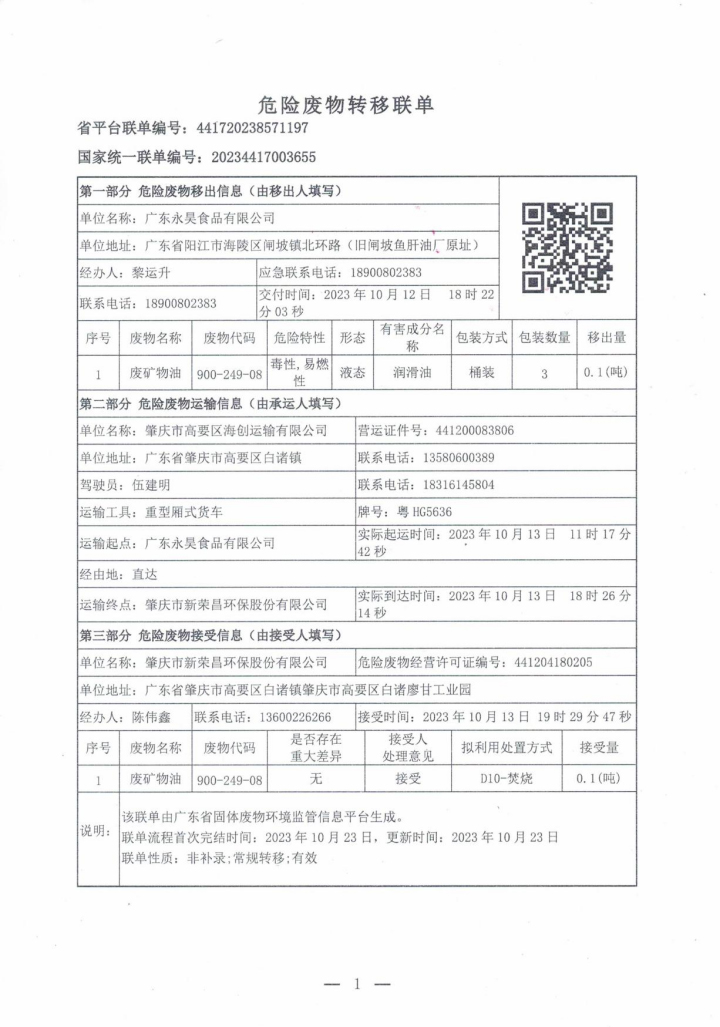 工程竣工环保验收报告及批复文件 | 广东永昊食品有限公司扩建项目竣工环境保护验收报告 | 广东永昊食品有限公司 | —— | 依申请提供复印件 |