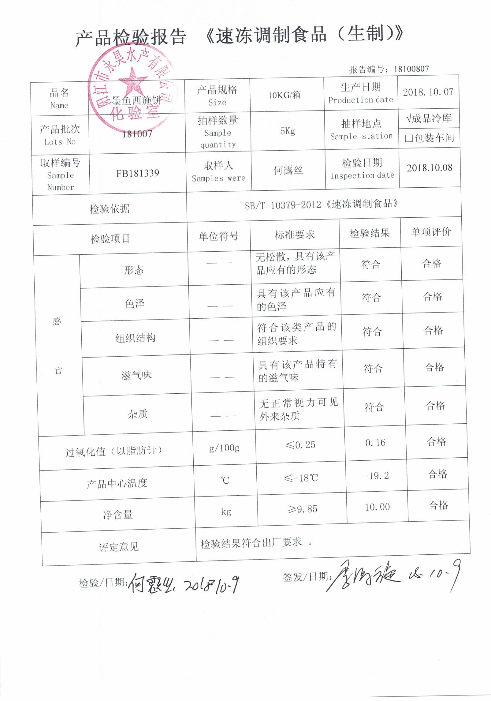 检测产品 :墨鱼西施饼