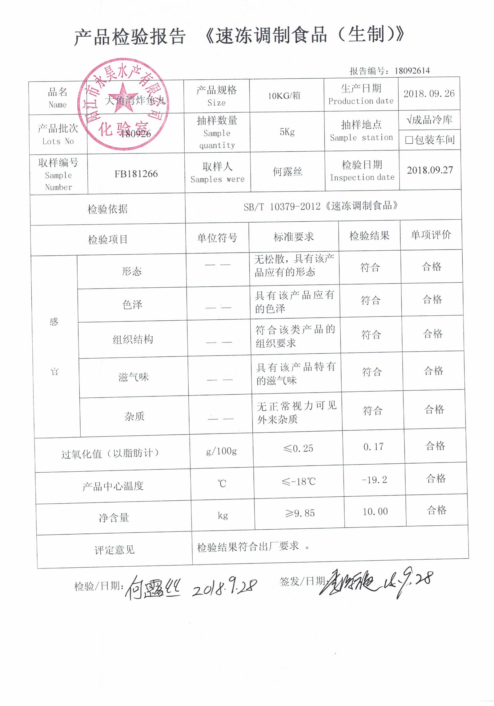 检测产品 :大角湾炸鱼丸